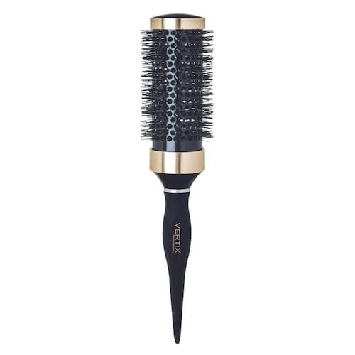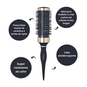 Escova Black and Gold possui base vazada de cerâmica e cerdas de nylon resistentes ao calor. Ideal para modelar e criar cachos em cabelos muito longos. Cabo antiderrapante. Tamanho grande.