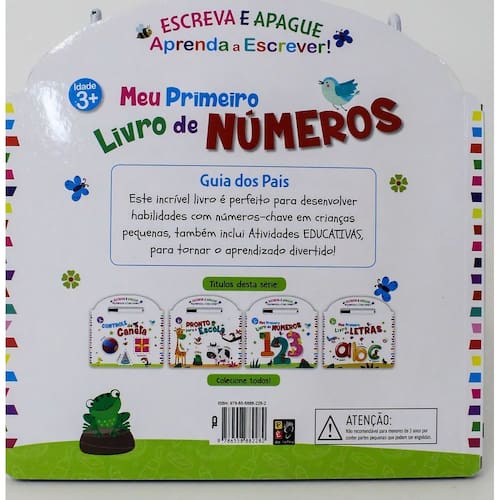 Título do livro : Escreva e apague - Meu primeiro livro de números Autor : Ed. Pé da Letra Idioma : Português Editora do livro : PÉ DA LETRA Capa do livro : Mole Volume do livro : 1 Quantidade de páginas : 6 Altura : 0.05 cm Largura : 0.18 cm Peso : 152 g Gênero do livro : Infantil Tipo de narração : Manual Data de publicação : 17-02-2022 Ano de publicação : 2022