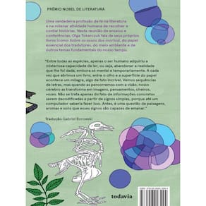 Em doze ensaios e conferências, incluindo o seu celebrado discurso do Prêmio Nobel, a escritora polonesa Olga Tokarczuk convida o leitor a testemunhar seu processo artístico, compartilha sua visão humana e inconformista acerca das grandes questões do mundo contemporâneo e abre para visita o seu laboratório de leitura e escrita de ficção, revelando, com inaudita franqueza, como foram concebidos seus incomparáveis livros e personagens. Uma celebração da literatura.