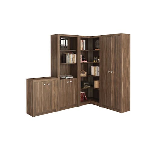 Conjunto para Escritório com 3 Estantes e Balcão Nogal - Tecnomobili