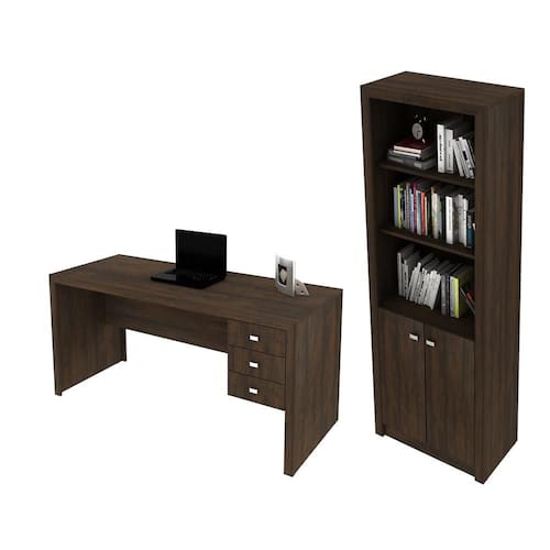 Conjunto para Escritório com Mesa para Computador e Armário c/ Prateleiras 2 portas Rústico - Tecnomobili
