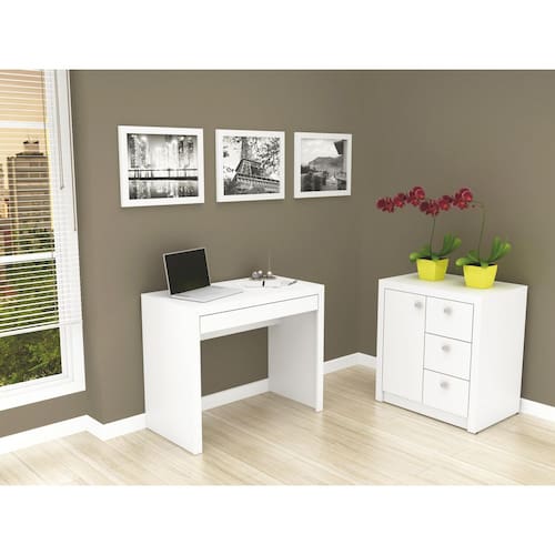 Conjunto para Escritório com Mesa para Computador e Balcão Branco - Tecnomobili