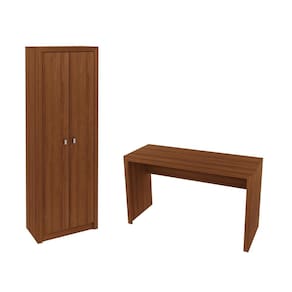 Conjunto para Escritório com Mesa para Computador Simples Gavetas Com Armário 2 Portas Amendoa - Tecnomobili