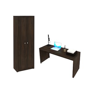 Conjunto para Escritório com Mesa para Computador Simples Gavetas e Armário 2 portas Rústico - Tecnomobili