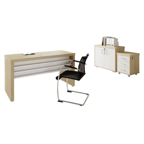 Escritório Completo Tamburato 2 Portas 3 Gavetas Carvalho/branco - Artany Móveis