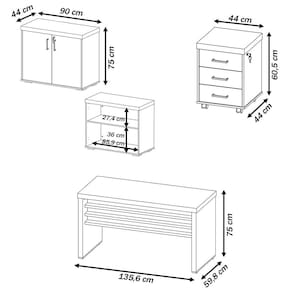 O(a) Escritório Completo Tamburato 2 Portas 3 Gavetas Carvalho/Branco - Artany Móveis é produzido em MDF, MDP, PVC e Tamburato na escala de brilho Fosco, e possui um grau de dificuldade de montagem: Médio.