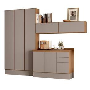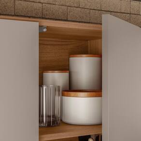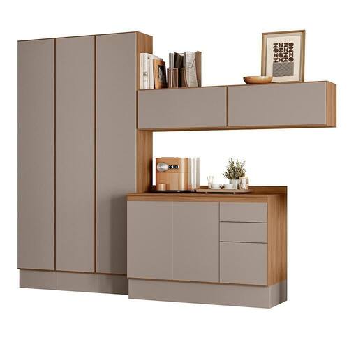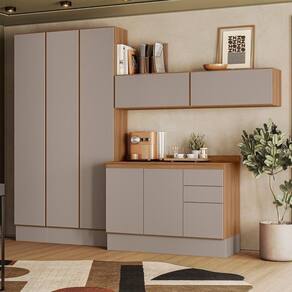 O ambiente é composto por (L x A x P): 3x Paneleiro 40cm (L x A x P): 40 x 219 x 31,4 cm 2x Armário Aéreo 80cm (L x A x P): 80 x 34 x 31,4 cm 1x Balcão 120cm (L x A x P): 120 x 82 x 51,5 cm 1x Tampo 120cm (L x A x P): 120 x 7,5 x 53 cm