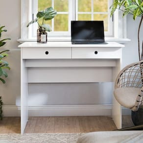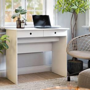 Escrivaninha 02 Gavetas Branco Com design funcional e estrutura compacta, a Escrivaninha 02 Gavetas é ideal para ambientes que valorizam organização com tampo com bordas ergonômicas oferece conforto no uso prolongado, sendo perfeito para momentos de estudo ou duas gavetas auxiliares ajudam a manter o espaço sempre organizado, acomodando objetos do dia a dia com modelo conta com corrediças metálicas, que proporcionam abertura suave e resistente ao uso contíém disso, os pés plásticos resistentes à umidade protegem a base do móvel e aumentam sua durabilidade, tornando-o uma excelente opção para home offices e quartos com pouco espações:Altura: 77 cmLargura: 90 cmProfundidade: 45 cmObservações:- 2 gavetas auxiliares com corrediça metálica - Bordas ergonômicas para mais conforto - Pés plásticos resistentes à umidade - Estrutura prática e funcional para estudos ou home office - Design versátil, fácil de combinar com diversos estilos
