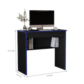 ALTURA DO PRODUTO (CM): 77,5 | COMNTO DO PRODUTO (CM): 40 | COMNTO PRODUTO COM EMBALAGEM (CM): 78 | LARGURA DO PRODUTO (CM): 70 | Quantidade de caixas de embalagem: 1 | Materiais da escrivaninha: MDF | Requer montagem: Sim | É em forma de L: Não | Largura: 70 cm | Comnto: 40 cm | Profundidade: 40 cm | Altura: 77,5 cm | ESTADO DE ORIGEM: SP | FORMATO: Retangular | INSTRUÇÕES/CUIDADOS: Limpar com flanela ou pano macio seco, não utilizar produtos abrasivos, desengordurantes, álcool ou solvente. Não expor o produto diretamente à luz solar e à umidade | CONTEÚDO DA EMBALAGEM: 1 Escrivaninha | LARGURA PRODUTO COM EMBALAGEM (CM): 43 | MARCA: Casa H | MATERIAL PARA FILTRO: MDP | MATERIAL PRINCIPAL: MDP | PESO DO PRODUTO (KG): 12,3 | PESO PRODUTO COM EMBALAGEM (KG): 12,3 | PRODUTO: Escrivaninha | PRODUTO PRECISA DE MONTAGEM?: Sim, a montagem é facil mas sugerimos a contratação de um montador para a montagem do produto. Não nos responsabilizamos por danos cas no ato da montagem. | CÔMODO INDICADO: Escritório | QUANTIDADE DE GAVETAS: 1 | QUANTIDADES DE CAIXAS DE EMBALAGEM: 1 | COR PREDOMINANTE: Preto | ALTURA DO PRODUTO COM EMBALAGEM (CM): 8 | DESCRIÇÃO DO TAMANHO: 77,5x70x40 | CORES DO PRODUTO (FILTRO DE CORES): Preto/Azul