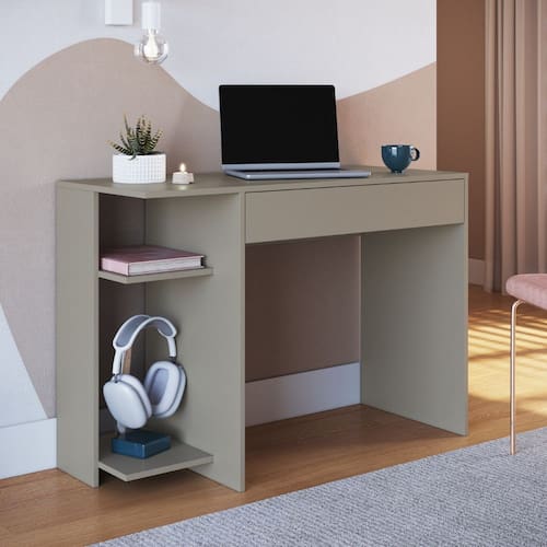 A Escrivaninha 1 Gaveta Pixel Moveis Castro alia funcionalidade e estilo ao seu ambiente. Produzida em MDP de 15mm com fundos em MDF 3mm e acabamento em U.V., garante durabilidade e facil manutencao. Conta com uma gaveta espacosa -35x9x72,7cm- com corredicas telescopicas de extracao total e duas prateleiras -33,5x15x25,6cm-, ideais para organizacao. Com amplo espaco e excelente distribuicao interna, e a escolha perfeita para quem busca funcionalidade e beleza.
