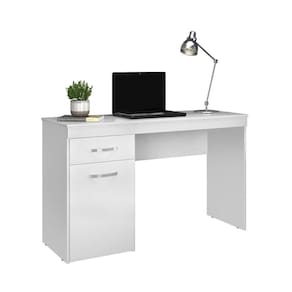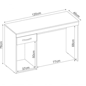 Mesa de estudos prática e usual que oferece dimensões ideais sem comprometer o espaço dos ambientes. Modelo dispõe de uma gaveta e compartimento com porta para acomodação de pertences.
