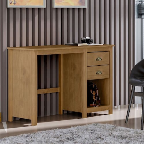 A Escrivaninha 2 Gavetas da Linha Topázio - Finestra Móveis, assim como os demais produtos da linha, é feita 100% de madeira maciça. Além da qualidade do seu material, possui design contemporâneo trazendo modernidade ao ambiente. A estrutura e o tampo são na cor Freijó, realçando os detalhes únicos da madeira.