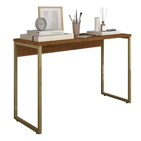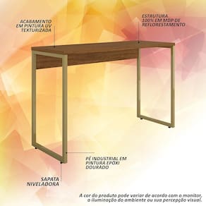 Detalhes Técnicos - Medidas Montada: A: 77,5cm | L: 120cm | P: 45cm - Material: MDP 15mm/25mm e estrutura em metal - Tampo em MDP de 25mm - Pintura U.V - Tonalidade: Dourado/Freijó