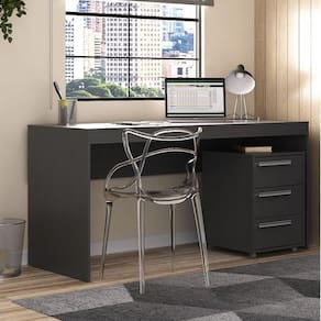 Possui Portas: Não Acabamento: Pintura UV Altura do Conjunto: 75 cm Ambiente: null Ambiente Principal: Escritório Cor: Onix TX Informação Complementar: 1x Escrivaninha Home Office Onix TXLargura: 150Altura: 75Peso: 23Profundidade: 60Necessita Montagem: Sim1x Gaveteiro 3 Gavetas com Rodízios Onix TXLargura: 40 cmAltura: 59 cmPeso: 15 kgProfundidade: 45 cmNecessita Montagem: Sim Material Principal: MDP