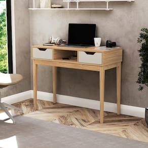 A Escrivaninha 2 Gavetas MB 1099 Movelbento é a escolha ideal para quem busca elegância no ambiente de trabalho. Com design moderno e funcional, conta com duas gavetas com corrediças telescópicas e um nicho aberto para organização eficiente dos seus materiais. Sua estrutura é feita em MDP de 15mm, com pés em madeira maciça -640x45mm-, oferecendo resistência e estabilidade. Com dimensões de 1000x800x455 mm, é perfeita para escritórios domésticos ou profissionais, proporcionando espaço adequado para notebook, documentos e acessórios de trabalho.