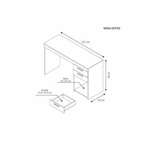 Escrivaninha 2 Gavetas Office New Notável A Escrivaninha Notável Office é a escolha perfeita para você que procura um design moderno! Ela conta com 2 gavetas e um nicho na parte inferior das gavetas, permitindo que você tenha muito espaço para organizar todos os objetos que quiser! Possui excelente acabamento! Atenção: A coloração das imagens do produto pode ter diferentes tonalidades dependendo do seu monitor. Ao receber o produto verifique as seguintes informações: Confira a quantidade de caixas e volumes; Consulte se o nome do comprador consta em todas as etiquetas; Verifique se as caixas não apresentam sinais de violação; Sempre confira seu produto no ato da entrega. NÃO nos responsabilizamos pela montagem do produto. Caso resida em apartamento, verificar se todos os volumes possuem tamanhos adequados ao elevador, Caso contrário é necessário solicitar ajuda para entrega de seu produto até seu apartamento.