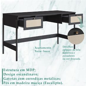 Escrivaninha 27931, Linha Oslo Artesano. Traz como característica um traço artesanal, suave e acolhedor. Possui estrutura em MDP de 15mm, pés palitos em madeira maciça de eucalipto garantindo ótima estabilidade e firmeza, acabamento em pintura BP na cor Hanover (Fosco). Composto por duas gavetas com corrediças metálicas, puxadores de poliestireno na cor Dourado, aplique de tela sintética (PVC com poliéster), fixada na parte externa das gavetas, as extremidades dos pés possuem sapatas emborrachadas para evitar atrito do móvel com o piso, conta ainda com longarina metálica embaixo do móvel para evitar empenamento, móvel com ampla superfície para trabalho e estudos, com design escandinavo minimalista, é a opção ideal para um ambiente com toque sofisticado e ao mesmo tempo aconchegante. Mais produtos da Linha Oslo, você encontra em nosso site, podendo fazer a composição completa para sua casa, são diversos itens com design prático e funcional para tornar a vida mais facil e a casa mais alegre. Este móvel chegará em sua casa separado em 01 volume.