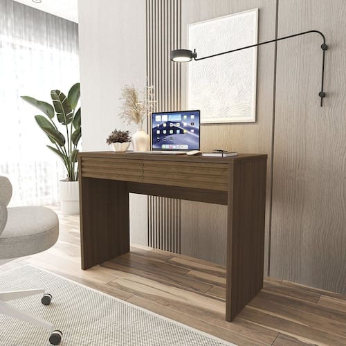 A escrivaninha Samambaia é a escolha perfeita para quem busca um móvel elegante e funcional para seu escritório ou home office. Com seu design moderno e linhas suaves, ela se adapta a qualquer ambiente, trazendo um toque de sofisticação e organização. A escrivaninha possui duas gavetas espaçosas, ideais para armazenar documentos, materiais de escritório e outros objetos pessoais. Além disso, seu tampo é amplo e resistente, proporcionando espaço suficiente para acomodar um computador, monitor, teclado e outros acessórios. Ela é ideal para quem precisa de um espaço funcional e organizado para trabalhar ou estudar. Produto Montado: Sim Acompanha Manual de Instalação: Sim Ambiente Principal: Escritório codigo_ean: 7900288016218 Complexidade da Montagem: Média: pode ser montado por mais de uma pessoa e/ou necessite de maior conhecimento para montagem Cor: Freijó Cor do Produto: Freijó Escala de Brilho: Fosco Espessura do Tampo: 2,5 mm Formato: Retangular Gaveta com Chave: Não Itens Inclusos: 01 Escrivaninha, Manual e Kit Ferragens Linha ou Coleção: Samambaia Manual de Montagem e Instalação: https://product-hub-prd.madeiramadeira.com.br/969126/documents/69caa67a-ba72-42d8-894b-a977aaede03c2535810342817308158753092.pdf Marca: CabeCasa MadeiraMadeira Material Principal: MDP Necessita Montagem: Sim Origem do Produto: Nacional Peso: 29,3 kg Quantidade de Gavetas: 02 Gavetas Sistema de Montagem: Parafusos, Cavilhas e Minifix Tipo de Corrediça da Gaveta: Metálica Telescópica Tipo de Escrivaninha: Escrivaninha Penteadeira