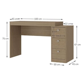 Composta de um material resistente, três gavetas para armazenamento e organização de objetos, esta escrivaninha é prática, compacta e funcional, sendo ideal para dormitórios e