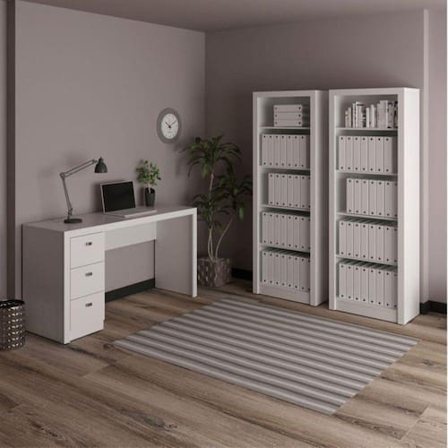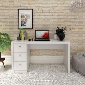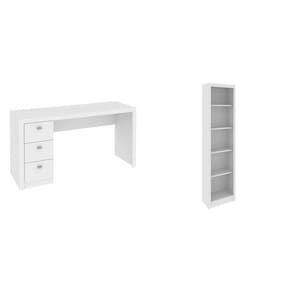 A Escrivaninha Tecno Mobili é feita em MDP com forte estrutura, que garante estabilidade ao produto. A Mesa para Escritório Tecno Mobili possui altura de 74,5cm e largura de 1,36m, com profundidade 46,5cm, medidas que oferecem comodidade e ergonomia na hora de estudar ou trabalhar. Suas 3 gavetas com corrediças metálicas e puxadores cromados oferecem boa capacidade de organização. A Estante Tecno Mobili é facilmente ajustada a espaços diversos, pois mede 1,71 m de altura por 60 cm de largura com 31,5 cm de profundidade, sendo ótima para manter a ordem dos seus arquivos e objetos ou acomodar seus livros. A Estante para Escritório Tecno Mobili é feita em MDP, material de alta resistência, que garante estabilidade e durabilidade ao produto, oferecendo total segurança. Acabamento em PB. Altura do Conjunto: 171 cm Ambiente: Escritório Ambiente Principal: Escritório codigo_ean: 7909903390733 Cor: Branco Cor do Produto: Branco Informação Complementar: 1x Escrivaninha 3 Gavetas Me4102 Branca Largura: 136 cm Altura: 75 cm Peso: 29,6 kg Profundidade: 47 cm Necessita Montagem: Sim