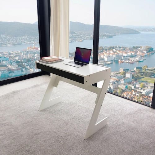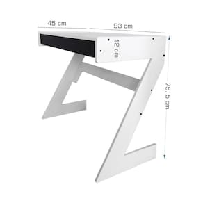 Escrivaninha 75cm Sete Branco. Escrivaninha Sete Escrivaninha Sete é um produto de fácil montagem, não possui gavetas. O tampo é fabricado em MDP com acabamento branco em laca fosca, com uma travessa preta . Os pés são fabricados em MDF. A escrivaninha é compacta, porém com as dimensões necessárias para os afazares profissionais e de estudos sem ocupar muito espaço de seu ambiente. Ean: 7909903287460