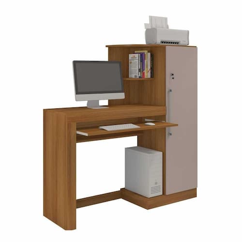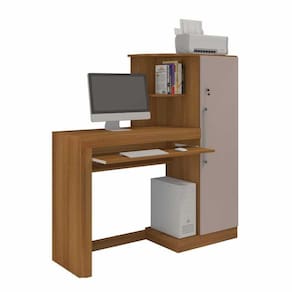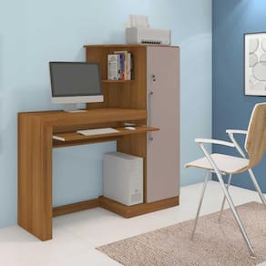 Versatilidade é a qualidade principal da Escrivaninha Aroeira que possui armário com fechadura, base de sustentação resistente, espaço para teclado, amplo espaço para impresso e base reforçada.