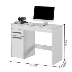 Escrivaninha Atenas 1 Porta E 1 Gaveta Arte Móveis Branco Branco Para garantir a organização do seu home-office ou quarto, você pode contar com a Escrivaninha Atenas! De charme contemporâneo, ela conta com espaço para acomodar o seu , além de 1 gaveta para pequenos objetos e 1 porta para deixar livros e cadernos sempre por perto e organizados. Com qualidade e beleza, essa peça vai te conquistar! Especificações do Produto Montado Altura: 80 cm Largura: 91 cm Profundidade: 45 cm Peso: 23 kg Escala de brilho: Semi-Brilho Tipo de Corrediça da Gaveta: Metálica Telescópica Formato: Retangular Suporta Até (kg) 30 kg Necessita de Montagem? Sim Complexidade da Montagem: Baixa Possui 1 gaveta e 1 Porta Recomendações de Uso, Manutenção e Limpeza: Limpar com flanela limpa e seca. Não usar produtos abrasivos Observações: Não oferecemos de montagem, mas todos os produtos possuem manual com o passo a passo.Recomendamos contratar um de sua preferência. Pode existir alguma diferença de tonalidade entre a foto e o produto, devido ao tratamento de imagens e à calibração de cores do monitor. Garantia: 90 Dias