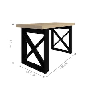 Com tampo de Tamburato de 50mm de espessura, a mesa tem sua aparência muito robusta. Seu autêntico design moderno é garantido pelos pés em X e belo contraste de cores