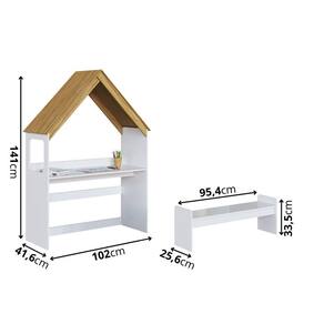 Escrivaninha Casinha Com Banco Infantil Montessoriana 100% Mdf Kit Casinha Escrivaninha Infantil Montessoriana 100% MDFTransforme o cantinho das crianças em um espaço de aprendizado, criatividade e diversão com o Kit Casinha Escrivaninha Infantil Montessoriana. Inspirado na metodologia Montessori, este kit foi desenvolvido para estimular a autonomia e o desenvolvimento infantil de forma lúdica e segura.Produzido em 100% MDF de alta qualidade, o design em formato de casinha encanta os pequenos e harmoniza perfeitamente com a decoração do quarto ou da brinquedoteca. A escrivaninha possui altura ideal para crianças, incentivando atividades como desenho, pintura, leitura e tarefas escolares de maneira confortável e independente.Características:- Material: 100% MDF resistente e durável;- Design Montessoriano: promove a autonomia e a organização;- Formato de casinha: visual lúdico e encantador;- Acabamento suave: bordas arredondadas e seguras para as crianças;- Fácil montagem: acompanha manual com instruções claras;- Tamanho ideal para crianças a partir de 2 ões da casinha:- Altura: 141cm;- Largura: 102cm;- Profundidade: 41,ões do banco:- Altura: 33,5cm;- Largura: 95,4cm;- Profundidade: 25, para criar um ambiente funcional e criativo, o Kit Casinha Escrivaninha Infantil é mais que um móvel é um convite ao mundo da imaginação e do aprendizado.