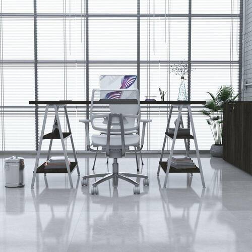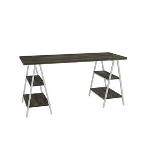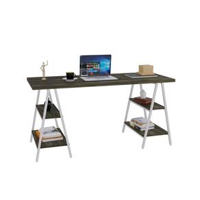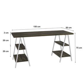 Escrivaninha Cavalete 150cm 4 Prateleiras Estilo Industrial Kuadra Carvalho Dark / Est.Branca - Marrom