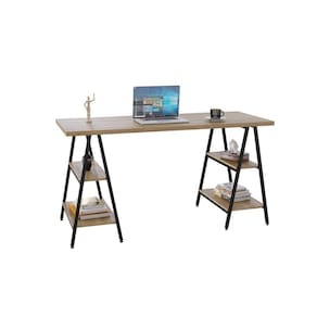 A Mesa Cavalete KUMC6150 Kuadra é um produto prático e versátil, que pode ser utilizado em diversos ambientes, como quarto e escritório, na sala, cozinha ou seu depósito. Conta com 04 prateleiras reforçadas e seu design industrial permite diversas composições de decoração com os demais módulos da linha. Acabamento da Prateleira: BP Acabamento dos Pés: Pintura Ambiente Principal: Escritório Complexidade da Montagem: Média: pode ser montado por mais de uma pessoa e/ou necessite de maior conhecimento para montagem Cor: Lamina Mel Cor da Base: Preto Cor do Produto: Lâmina Mel Cor do Tampo: Marrom Cor Interna: Lâmina Mel Escala de Brilho: Fosco Escala de Brilho da Prateleira: Fosco Espessura do Tampo: 30 Formato: Retangular Itens Inclusos: 1 Escrivaninha, Kit Ferragens e Manual de Montagem Linha ou Coleção: Kuadra Manual de Montagem e Instalação: https://cdn2.madeiramadeira.com.br/atributo/compace-dalex/1259731-manual-novo-cavalete.pdf Material da Prateleira: MDP Material dos Pés: Aço Material Principal: MDP Necessita Montagem: Sim Origem do Produto: Nacional Pés com Regulagem de Altura: Sim Pés Reguláveis: Sim Peso: 25.79 Peso Máximo por Prateleira: 5 Possui Passa Cabos: Não Possui Portas: Não Possui suporte para CPU: Não Possui Suporte para Teclado: Não Recomendações de Uso, Manutenção e Limpeza: Para a limpeza, utilize flanela seca ou pano macio levemente umedecido em água. Utilize um pano seco em seguida. Evite contato com produtos químicos (solventes, thinner, acetona, etc) e não utilize nenhum tipo de esponja de aço. Sapatas Niveladoras: Sim Sistema de Montagem: Parafusos, Minifix, Cantoneiras, Buchas e sapatas reguláveis Suporta Até (kg): 50