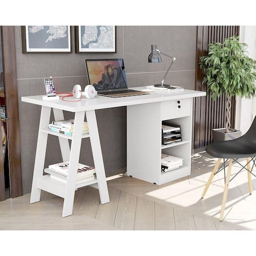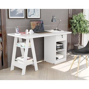 Escrivaninha Cavalete 2 Prateleira 2 Nichos 1 Gaveta Bali Branco - Carmolar