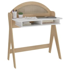 Escrivaninha Ceci Naturale / Branco Escrivaninha Ceci Naturale / Branco - Transforme seu espaço com a Escrivaninha Ceci! Com seu design delicado e encantador, ela une funcionalidade e estilo. O destaque fica por conta do painel arredondado com pintura 3D, que dá um toque único ao móvel. Além disso, conta com dois nichos para você organizar seus livros e materiais de forma prática. Feita em MDF e com pés estáveis, essa mesa é perfeita para trabalho, estudo ou até mesmo como penteadeira. Eleve a estética do seu ambiente com a Escrivaninha Ceci!