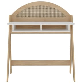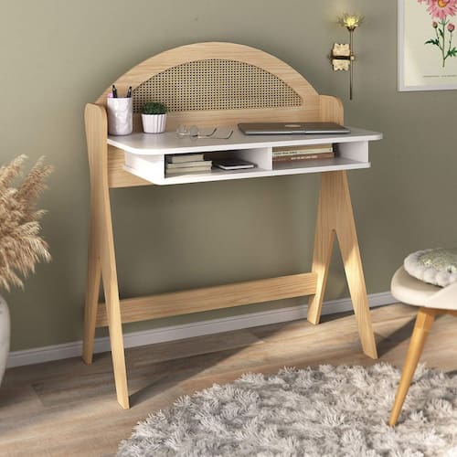 Transforme seu espaço com a Escrivaninha Ceci! Com seu design delicado e encantador, ela une funcionalidade e estilo. O destaque fica por conta do painel arredondado com pintura 3D, que dá um toque único ao móvel. Além disso, conta com dois nichos para você organizar seus livros e materiais de forma prática. Feita em MDF e com pés estáveis, essa mesa é perfeita para trabalho, estudo ou até mesmo como penteadeira. Eleve a estética do seu ambiente com a Escrivaninha Ceci!