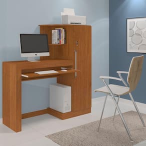 Versatilidade é a qualidade principal da Mesa para computador Aroeira que possui armário com fechadura, base de sustentação resistente, espaço para teclado, amplo espaço para impresso e base reforçada. Réguas MDF 15 mm, costa e fundo de gaveta HDF 2,8 mm e restante MDP 15 mm.Pesos e DimensõesAltura (cm) 134 cmLargura (cm) 125 cmProfundidade (cm) 43 cmPeso (kg) 40 kgGarantiaGarantia 03 MesesMateriais e AcabamentosMaterial Principal MDPAcabamento Pintura UVEscala de Brilho FoscoMontagemNecessita Montagem SimComplexidade da Montagem Média: pode ser montado por mais de uma pessoa e/ou necessite de maior conhecimento para montagemSistema de Montagem Parafusos e Minifix.Recomendações de Uso, Manutenção e Limpeza Limpeza com pano umedecido. Não aplicar lustra móveis.Documentos AdicionaisManual de Montagem Clique aqui para acessarCaracterísticasQuantidade de Gavetas 0 GavetasCor CacauMarca JCM MóveisSuporta Até (kg) 40 kgPossui Prateleiras NãoPossui Portas SimPossui Gavetas NãoDobrável NãoGaveta com Chave NãoPossui Porta Objetos SimPossui Suporte para Teclado SimSapatas Niveladoras SimCor do Produto CacauCor Interna CacauPossui Passa Cabos NãoOrigem do Produto NacionalQuantidade de Portas 1Ambiente Principal EscritórioAmbiente Cor Predominante MarromFormato da Escrivaninha RetangularItens InclusosItens Inclusos 1 Mesa e Manual de Montagem.