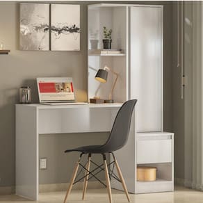 A ESCRIVANINHA COM ARMARIO OFFICE MORADA é completa e ideal para tornar o ambiente home Office mais produtivo e organizado, ela conta com 1 porta com prateleiras para você guardar seus livros, papéis, estudos e trabalhos com muita praticidade, sem falar na gaveta com design moderno e puxador embutido. Acabamento: Impressão Acabamento da Gaveta: Impressão Acabamento da Porta: Impressão Acabamento da Prateleira: Impressão Altura: 158 cm calculo: unidade Complexidade da Montagem: Baixa: pode ser montado por uma pessoa sozinha Cr: Branca Cr do Produto: Branca Cr Interna: Branca Escala de Brilho: Brilhante Escala de Brilho da Porta: Brilhante Escala de Brilho da Prateleira: Brilhante Formato: Retangular Gaveta com Chave: Não Itens Inclusos: 1 Escrivaninha e Manual Largura: 126 cm Linha ou Coleção: Office Morada Manual de Montagem e Instalação: https://cdn2.madeiramadeira.com.br/atributo/demobile/716070-esquema-de-montagem-29800.pdf Material da Gaveta: MDP Material da Porta: MDP Material da Prateleira: MDP Material Principal: MDP Necessita Montagem: Sim Origem do Produto: Nacional Peso: 36,8 kg Peso Máximo por Gaveta: 3 kg Peso Máximo por Prateleira: 3 kg Possui Gavetas: 01 Possui Passa Cabos: Não Possui Pés: Não Possui Porta Objetos: Não Possui Portas: 01 Possui Prateleiras: 03 Possui Suporte para Teclado: Não Profundidade: 45 cm Recomendações de Uso, Manutenção e Limpeza: Flanela seca Sapatas Niveladoras: Sim Sistema de Montagem: Parafuso e cavilha Suporta Até (kg): 20 kg Tamanho: Tipo de Corrediça da Gaveta: Metálica Simples Tipo de Dobradiça/Corrediça da Porta: Metálica Tipo de Porta: Bater Tipo de Puxador da Gaveta: Não Possui - Abertura por Fecho Toque Tipo de Puxador da Porta: Não Possui - Abertura por Fecho Toque