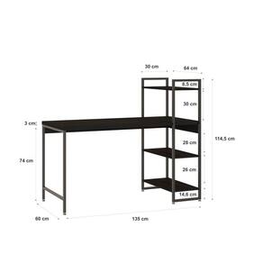 A Mesa c/Estante Active ACEMA6135 é um produto prático e versátil, que pode ser utilizado em diversos ambientes, como quarto e escritório, na sala, cozinha ou seu depósito. Conta com estrutura em aço com pintura epóxi além de 03 prateleiras acopladas, deixando seus objetos mais organizados e ao alcance das mãos. Acabamento da Gaveta: Acabamento da Porta: Acabamento da Prateleira: BP Acabamento dos Pés: Altura dos Pés: Ambiente Principal: Escritório Complexidade da Montagem: Média: pode ser montado por mais de uma pessoa e/ou necessite de maior conhecimento para montagem Cor: Preto Onix Cor da Base: Preto Cor do Produto: Preto Ônix Cor do Tampo: Preto Cor Flex: Cor Interna: Preto Ônix Escala de Brilho: Fosco Escala de Brilho da Gaveta: Escala de Brilho da Porta: Escala de Brilho da Prateleira: Fosco Formato: Retangular Gaveta com Chave: Informações Complementares: Itens Inclusos: 1 Escrivaninha, Kit Ferragens e Manual de Montagem Largura Frontal: Largura Lateral: Linha ou Coleção: Active Manual de Especificação Técnica: Manual de Montagem e Instalação: https://cdn2.madeiramadeira.com.br/atributo/compace-dalex/1058633-manual-mesa-estante-1-35-3p-active.pdf Material da Gaveta: Material da Porta: Material da Prateleira: MDP Material do Puxador da Gaveta: Material do Puxador da Porta: Material dos Pés: Aço Material Principal: MDP Montagem Flex: Necessita Montagem: Sim Origem do Produto: Nacional Pés com Regulagem de Altura: Pés Reguláveis: Peso: 21.2 Peso Máximo por Gaveta: Peso Máximo por Prateleira: 8 Possui Passa Cabos: Não Possui Pés: 02 Possui Porta Objetos: Não Possui Portas: Não Possui Prateleiras: 03 Possui suporte para CPU: Possui Suporte para Teclado: Não Quantidade de Nichos: Recomendações de Uso, Manutenção e Limpeza: Para a limpeza, utilize flanela seca ou pano macio levemente umedecido em água. Utilize um pano seco em seguida. Evite contato com produtos químicos (solventes, thinner, acetona, etc) e não utilize nenhum tipo de esponja de aço. Rodízio com Trava: Sapatas Niveladoras: Sim Sistema de Montagem: Parafusos Suporta Até (kg): 54 Tipo de Corrediça da Gaveta: Tipo de Dobradiça/Corrediça da Porta: Tipo de Madeira Maciça: Tipo de Madeira Maciça da Gaveta: Tipo de Madeira Maciça da Porta: Tipo de Madeira Maciça da Prateleira: Tipo de Madeira Maciça do Puxador da Gaveta: Tipo de Madeira Maciça do Puxador da Porta: Tipo de Madeira Maciça dos Pés: Tipo de Puxador da Gaveta: Tipo de Puxador da Porta: