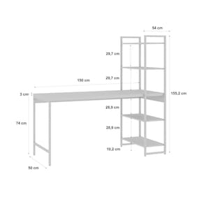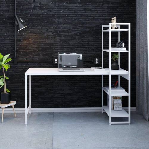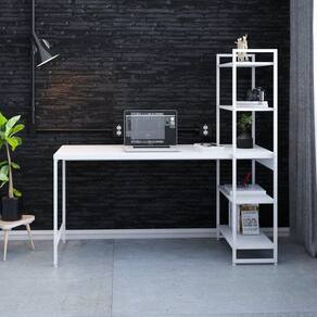 Mesa c/Estante Alta 150X64X147cm C/04 Prateleiras Branco Chess / Est.Preta
