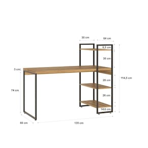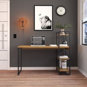 Escrivaninha com Estante Alta Estilo Industrial 135cm com 03 Prateleiras Dynamica Yescasa Lâmina Mel /Preto - Marrom