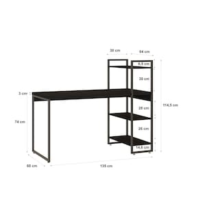 A Mesa Estante Dynamica DYEMA6135 é um produto prático e versátil, que pode ser utilizado em diversos ambientes, como quarto, escritório ou na sala. A Linha Dynamica reúne design minimalista e praticidade, traços retos e móveis versáteis são as características dessa coleção. As estruturas metálicas possuem pintura Epóxi e sapatas niveladoras e, nos tampos, MDP BP Acetinado com fitas de borda em PVC. Acabamento do Tampo: Acetinado Acabamento dos Pés: Pintura Acompanha Manual de Instalação: Sim Ambiente Principal: Escritório Complexidade da Montagem: Média: pode ser montado por mais de uma pessoa e/ou necessite de maior conhecimento para montagem Cor: Preto Onix Cor da Base: Preto Cor do Produto: Preto Ônix Dobrável: Não Escala de Brilho: Fosco Espessura do Tampo: 30 mm Formato: Retangular Itens Inclusos: 1 Mesa c/Estante + Manual de Montagem Manual de Montagem e Instalação: https://product-hub-prd.madeiramadeira.com.br/921510/documents/afadf9d1-728d-457c-b6ef-ce577ae2ae36AL20ESTANTE20MESA20320PRAT.pdf Material dos Pés: Aço Material Principal: MDP Montagem Flex: Sim Necessita Montagem: Sim Origem do Produto: Nacional Pés Reguláveis: Sim Peso: 20,53 kg Peso Máximo por Prateleira: 8 kg Possui Passa Cabos: Não Possui Porta Objetos: Não Possui Portas: Não Possui Prateleiras: Sim Possui suporte para CPU: Não Possui Suporte para Teclado: Não Possui Vidro: Não Quantidade de Prateleiras: 03 Prateleiras Recomendações de Uso, Manutenção e Limpeza: Para a limpeza, utilize flanela seca ou pano macio levemente umedecido em água. Utilize um pano seco em seguida. Evite contato com produtos químicos (solventes, thinner, acetona, etc) e não utilize nenhum tipo de esponja de aço. Sapatas Niveladoras: Sim Sistema de Montagem: Parafuso, Cantoneira L, Sapara Niveladora, Bucha c/Rosca Suporta Até (kg): 54 kg