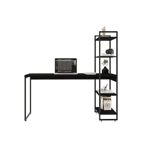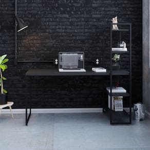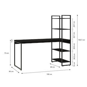 Escrivaninha com Estante Alta Estilo Industrial 150cm com 04 Prateleiras Dynamica Yescasa Preto Onix