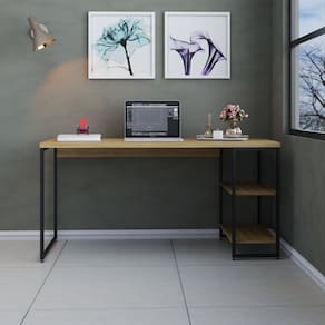 A Mesa Estante Dynamica DYEMB6150 é um produto prático e versátil, que pode ser utilizado em diversos ambientes, como quarto, escritório ou na sala. A Linha Dynamica reúne design minimalista e praticidade, traços retos e móveis versáteis são as características dessa coleção. As estruturas metálicas possuem pintura Epóxi e sapatas niveladoras e, nos tampos, MDP BP Acetinado com fitas de borda em PVC. Acabamento do Tampo: Acetinado Acabamento dos Pés: Pintura Acompanha Manual de Instalação: Sim Ambiente Principal: Escritório Complexidade da Montagem: Média: pode ser montado por mais de uma pessoa e/ou necessite de maior conhecimento para montagem Cor: Lâmina Mel / Est.Preta Cor da Base: Preto Cor do Produto: Lâmina Mel / Est.Preta Dobrável: Não Escala de Brilho: Fosco Espessura do Tampo: 30 mm Formato: Retangular Itens Inclusos: 1 Mesa c/Estante + Manual de Montagem Manual de Montagem e Instalação: https://product-hub-prd.madeiramadeira.com.br/921522/documents/7e47eece-d2fa-4c3e-8a69-189e73d9e751ESTANTE20MESA20BAIXA20NOVO.pdf Material dos Pés: Aço Material Principal: MDP Montagem Flex: Sim Necessita Montagem: Sim Origem do Produto: Nacional Pés Reguláveis: Sim Peso: 18,7 kg Peso Máximo por Prateleira: 8 kg Possui Passa Cabos: Não Possui Porta Objetos: Não Possui Portas: Não Possui Prateleiras: Sim Possui suporte para CPU: Não Possui Suporte para Teclado: Não Possui Vidro: Não Quantidade de Prateleiras: 02 Prateleiras Recomendações de Uso, Manutenção e Limpeza: Para a limpeza, utilize flanela seca ou pano macio levemente umedecido em água. Utilize um pano seco em seguida. Evite contato com produtos químicos (solventes, thinner, acetona, etc) e não utilize nenhum tipo de esponja de aço. Sapatas Niveladoras: Sim Sistema de Montagem: Parafuso, Cantoneira L, Sapara Niveladora, Bucha c/Rosca Suporta Até (kg): 46 kg