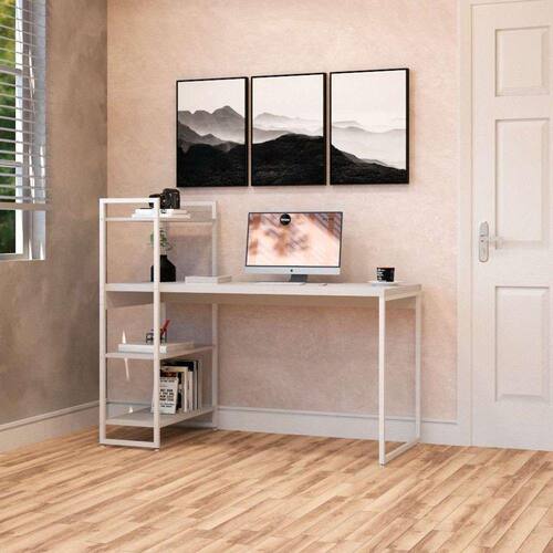 que tal a escrivaninha com estante studio? estruturada em aço e mdp, a belíssima escrivaninha studio é perfeita para compor o seu cantinho de estudos ou trabalho. com ótimo espaço de tampo, a peça cumpre muito bem a função de acomodar notebook e outros itens essenciais à sua rotina, como luminária e porta-canetas - e ainda tem estante para você guardar livros ou outros itens do dia a dia. somado à funcionalidade, o design clean que conta com tonalidade sóbria e atemporal dá um ar minimalista ao cômodo e torna fácil combiná-la com os outros móveis do home e. daí, é só adquirir a cadeira perfeita e aproveitar seu espaço produtivo ;) Marca: Modern Ean: 7893640528514