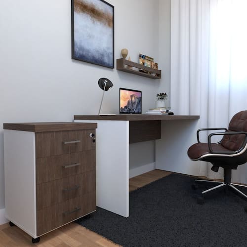 Nosso conjunto oferece uma mesa moderna com prateleira integrada e gaveteiro espaçoso, perfeito para qualquer ambiente, seja em casa ou no escritório. Com design inteligente e funcional, ele mantém tudo ao seu alcance e sua mesa sempre organizada. Feita com materiais de alta qualidade e acabamento resistente a riscos, combina durabilidade com sofisticação, disponível em várias cores para se adaptar ao seu estilo. Diga adeus à bagunça e olá à produtividade! Ambiente Principal: Escritório Manual de Montagem e Instalação: https://product-hub-prd.madeiramadeira.com.br/917913/documents/fe8b2404-cfe1-40b3-8c01-1ea47e0838042077099522817189947533193.pdf Origem do Produto: Nacional