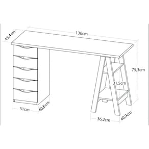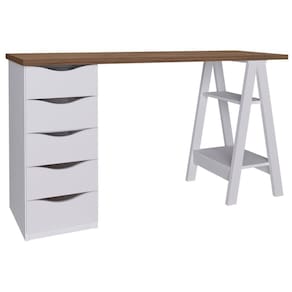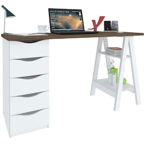 Escrivaninha com Gaveteiro Mesa Office Spirit II Nogal/Branco - Escrivaninha com Gaveteiro Mesa Office Spirit II