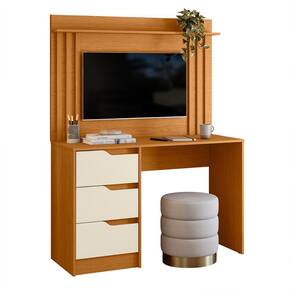 Além disso, a mesa vem com um suporte para TV, permitindo que você aproveite seus programas favoritos enquanto trabalha ou estuda.