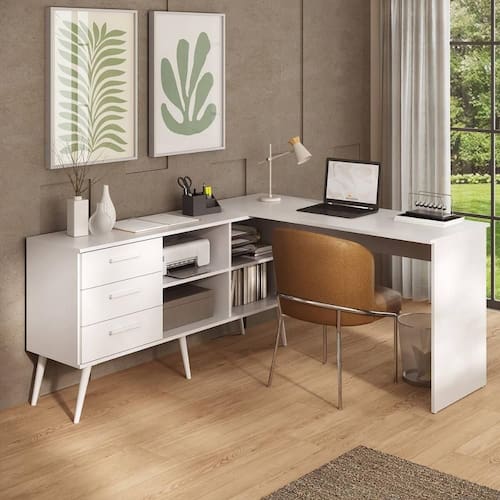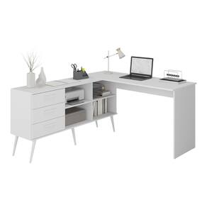 Escrivaninha de Canto em L com 3 Gavetas Porto Multimóveis MP6036 - Branco