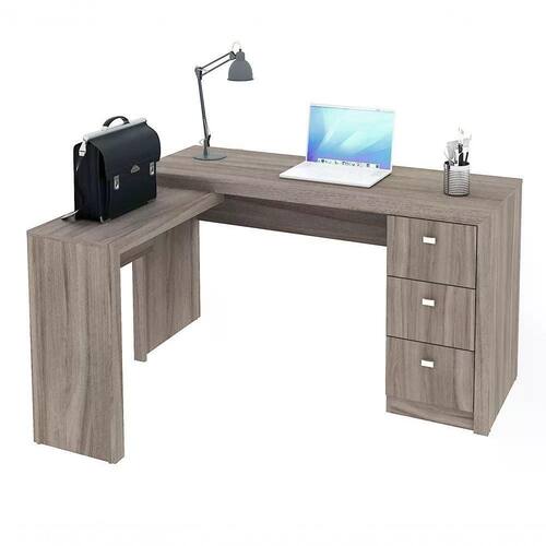Escrivaninha de Canto Reversível Home Office, estrutura em MDP de 15mm, pintura com acabamento em BP (Fosco), gavetas com corrediças metálicas, puxadores cromados, deixe seus dias de trabalho mais produtivos, perfeita para trabalhar e estudar, ideal para colocar seu computador, notebook, documentos e o que você mais desejar. Este móvel chegará em sua casa separado em 01 volume.