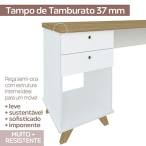 Escrivaninha de Estudos Mesa Office com Gavetas Sky Olmo/Branco - Escrivaninha de Estudos Mesa Office com Gavetas Sky