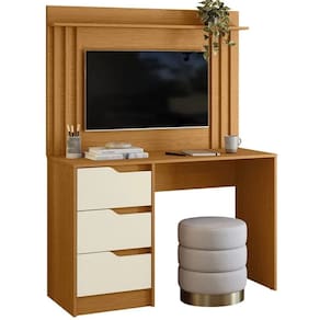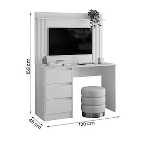 Escrivaninha Doble 3 Gavetas com Painel para TV até 42 Polegadas Ripado Albatroz Descubra a funcionalidade e o design moderno da Escrivaninha Doble 3 Gavetas com Painel para TV até 42 Polegadas Ripado Albatroz. Este móvel inteligente combina um espaço de trabalho prático com um centro de entretenimento, ideal para otimizar ambientes menores ou multifuncionais. A escrivaninha oferece uma ampla superfície para estudos ou trabalho e conta com três gavetas espaçosas, proporcionando organização e fácil acesso aos seus materiais. O diferencial está no painel acoplado com detalhe ripado, perfeito para fixar uma TV de até 42 polegadas, transformando o ambiente em um escritório, quarto ou sala de estar conforme a sua necessidade.\nMEDIDAS\nAltura 159 cm\nLargura 120 cm\nProfundidade 46 cm\nCARACTERÍSTICAS\nFabricante Albatroz\nModelo Escrivaninha Doble\nGarantia 3 meses\nTipo de produto Escrivaninha\nAmbiente Diversos\nEstrutura MDP\nQuantidade de Prateleiras 01\nQuantidade de Gavetas 03\nTipo de Corrediça Telescópica\nTipo de Puxadores Cava\nAcabamento Pintura UV\nNecessita Montagem Sim\nAcompanha Manual de Instalação Sim\nINFORMAÇÕES IMPORTANTES\nObjetos decorativos que porventura apareçam na foto, não acompanham o produto. Não nos responsabilizamos pela montagem/instalação dos produtos.\nMontagens, desmontagens e instalações são responsabilidades do cliente. Indicamos que contrate uma empresa de montagem ou um montador de sua confiança.\nAlém disso, favor verificar se os pés e acessórios estão dentro do forro inferior do produto. Em suma, todas as informações divulgadas sobre o produto são de responsabilidade do Fabricante.\nAs cores do produto podem variar de acordo com o seu monitor, a iluminação do ambiente em que você está e até mesmo a sua percepção visual. Além da cor, pequenos detalhes e acabamentos podem não ficar evidentes na foto, por isso as imagens são meramente ilustrativas.